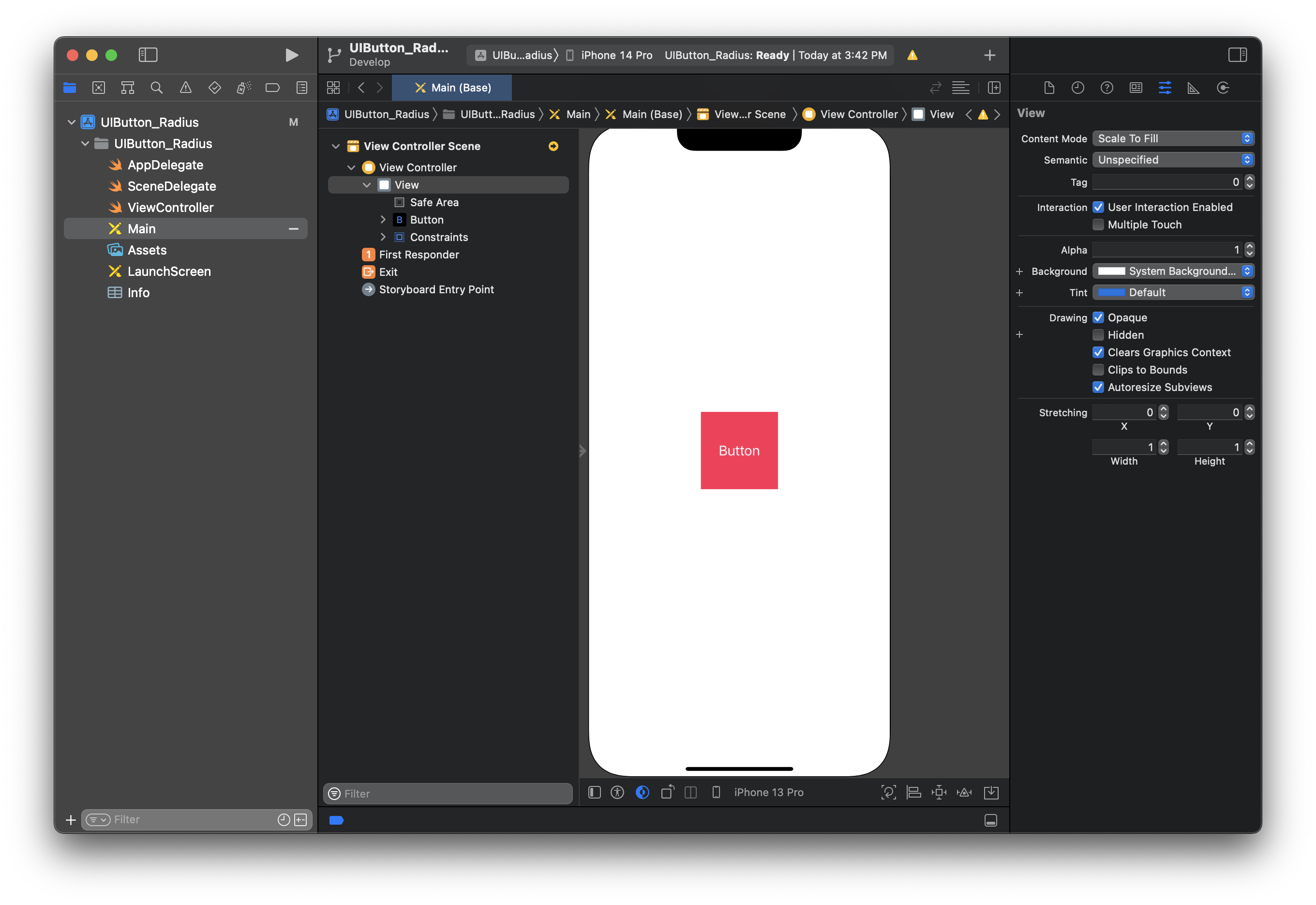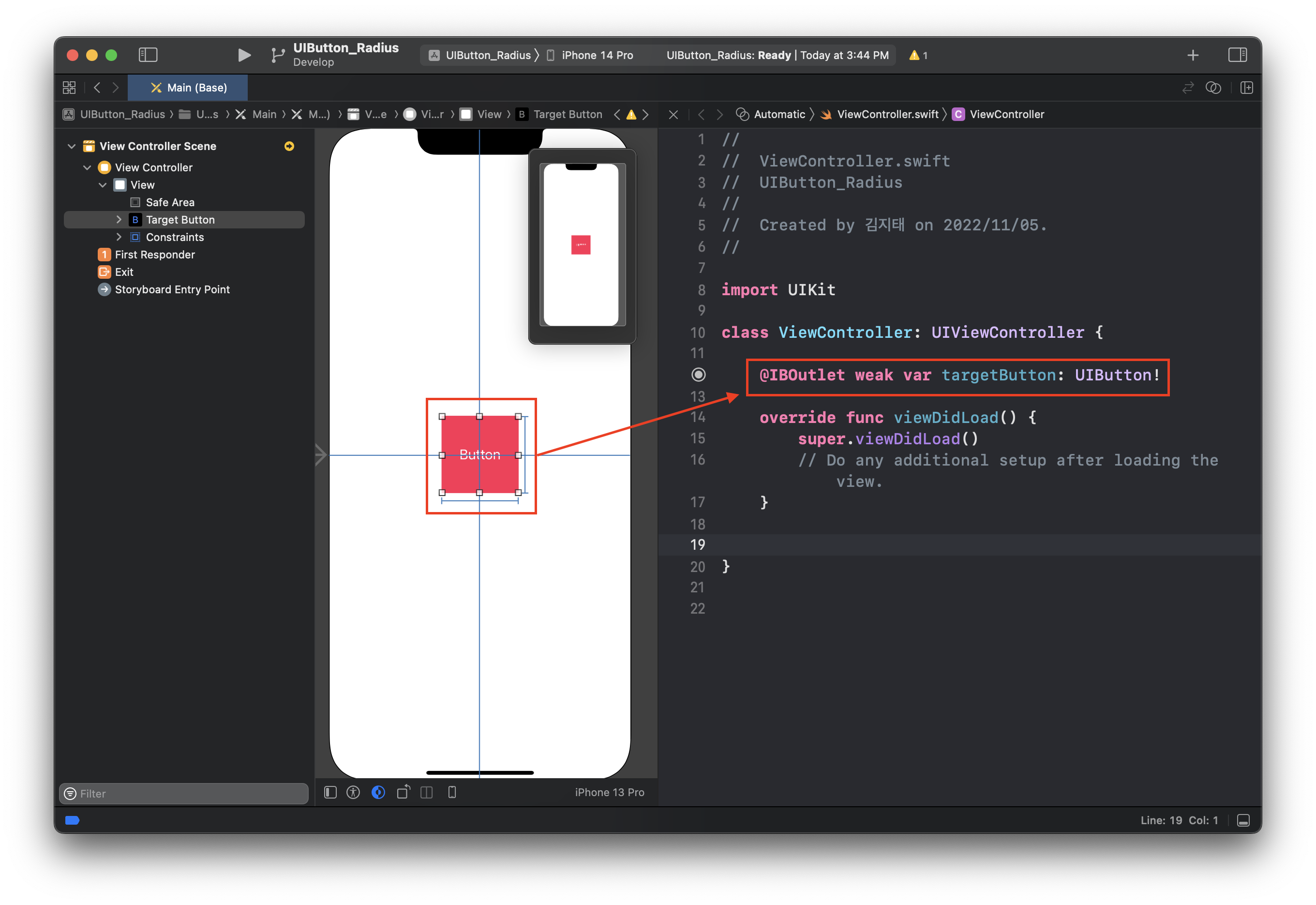 오늘은 UIButton을 둥글게 만들어 보는 작업을 수행할 것이다. 앞에 글에서는 Storyboard를 사용해서 radius를 주었다면 이번에는 코드를 사용해서 적용할 것이다. Storyboard 방법이 궁금한 사람은 아래 글을 참고해서 연습해보면 된다.